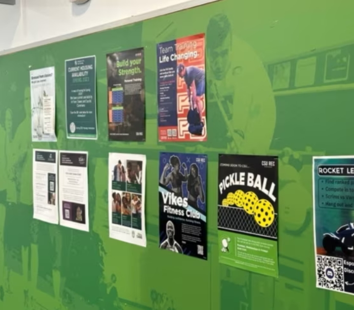 학교는 학생들이 캠퍼스 활동에 계속 참여할 수 있도록 레크리에이션 활동을 제공합니다. 최근 어느 날 아침, 게시판에는 피클볼이라고 불리는 라켓 스포츠, 피트니스 클럽 미팅, 로켓 리그라고 불리는 비디오 게임의 클럽 이벤트에 대한 공지가 있었습니다.