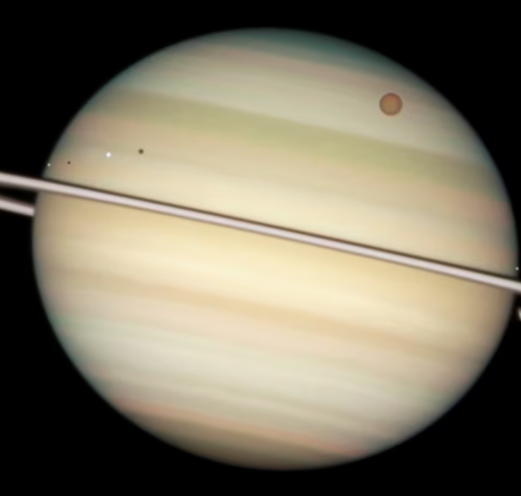 토성에는 엔셀라두스와 타이탄이라고 불리는 두 개의 "해양 위성"이 있습니다. 토성 주위에 고리를 형성하는 얼음과 바위 조각들은 그 자체로 달로 여겨지지 않는다고 나사는 말했습니다. 하지만 달은 행성의 고리 안에 존재하고 고리를 일직선으로 유지하는 데 도움을 줍니다.