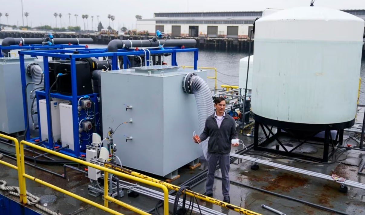 Gaurav Sant는 UCLA의 탄소 관리 연구소의 소장이고 개발 프로젝트를 이끄는 것을 도왔습니다. 그는 바다의 변화라고 불리는 이 기술은 바다의 탄소 수준을 줄이기 위해 바다의 자연적인 능력을 사용하기 위한 것이라고 AP에 말했습니다.