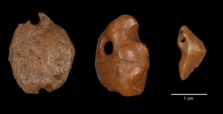 과학자들은 나무늘보의 뼈로 만든 작은 펜던트를 보았습니다. 펜던트는 둥근 구멍이 뚫려 있고 세련되어 보입니다. 연구팀은 이 펜던트들이 인간이 만든 흔적을 보여준다고 말했습니다.