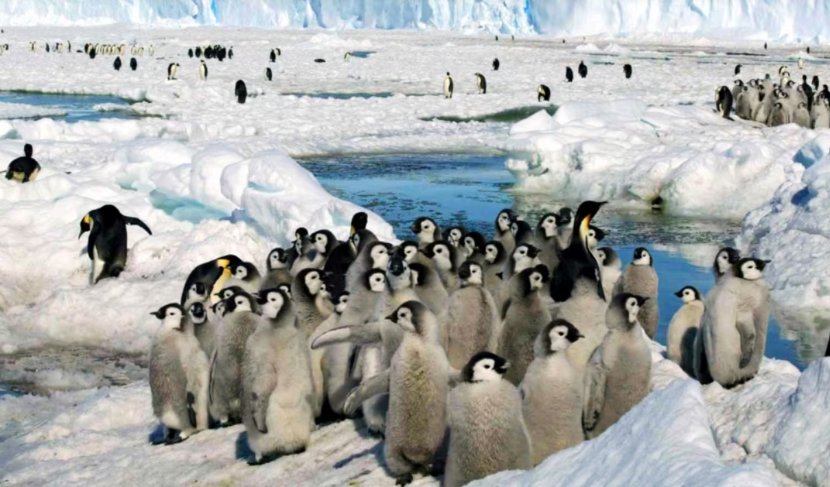 황제펭귄 병아리들은 남극의 겨울 동안 형성되는 얼음 위에서 태어난다. 펭귄 병아리들은 태어난 후 한 두 달 동안 방수 깃털이 자라지 않기 때문에 그 얼음은 중요합니다.