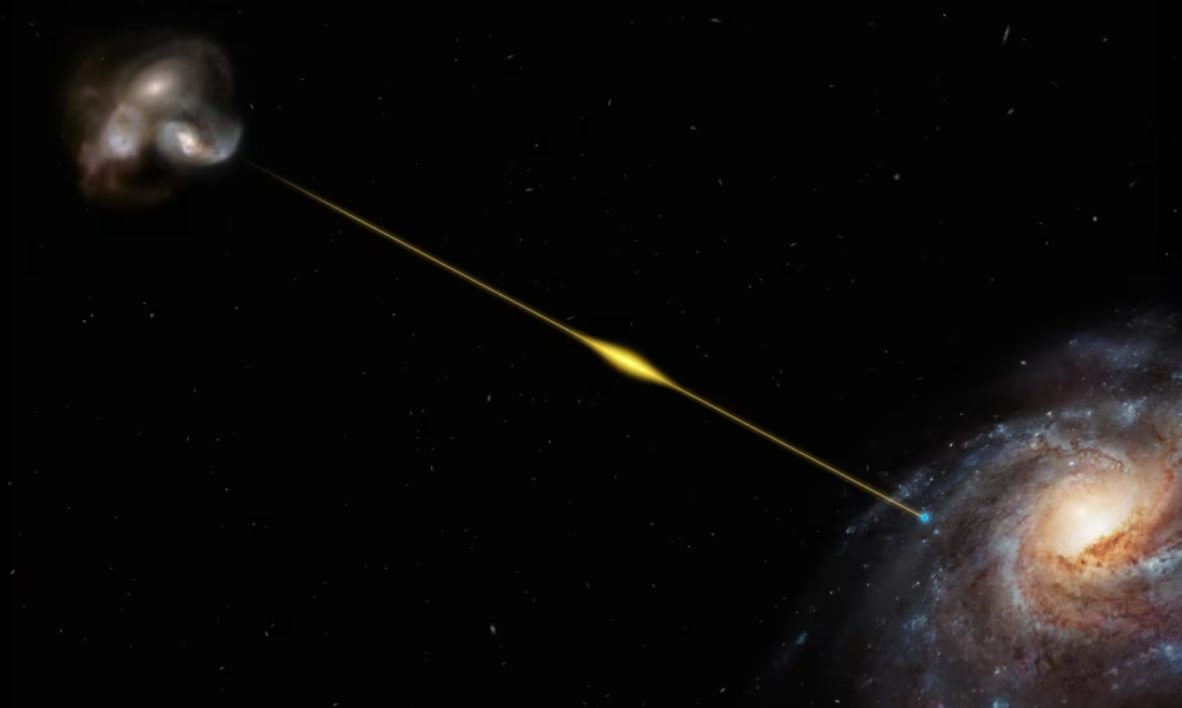 천문학자들은 약 80억 년 전 은하의 결합처럼 보이는 곳에서 나온 라디오 파를 감지했습니다. 이 발견은 설명하기 어려운 사건의 고대에서 알려진 가장 오래된 사례로, 고속 라디오 폭발이라고 불립니다.
