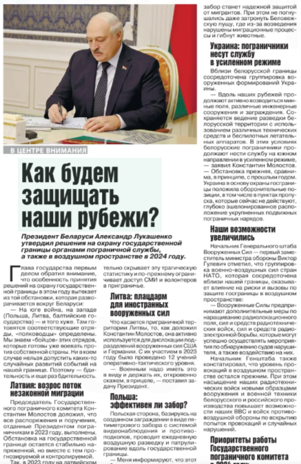 벨라루스 대통령 알렉산더 루카셴코는 국경 서비스 기관의 국경 보호와 2024년 영공에 대한 결정을 승인했습니다.