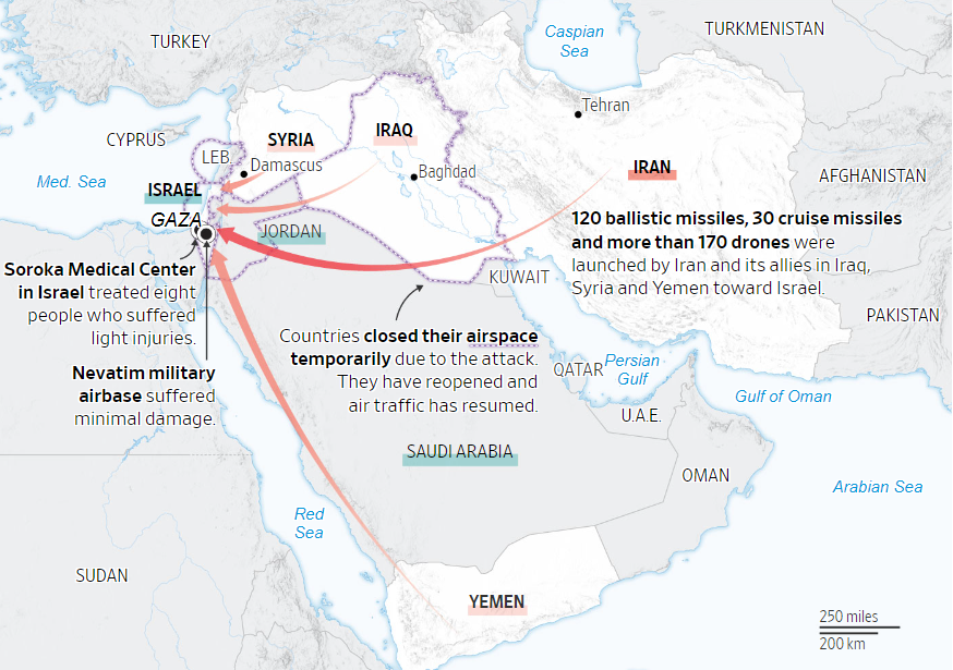 요르단과 사우디아라비아의 도움을 받아 이스라엘과 미국이 협력한 방공 작전 덕분에 드론과 미사일의 99%가 목표물을 타격하지 못했습니다.