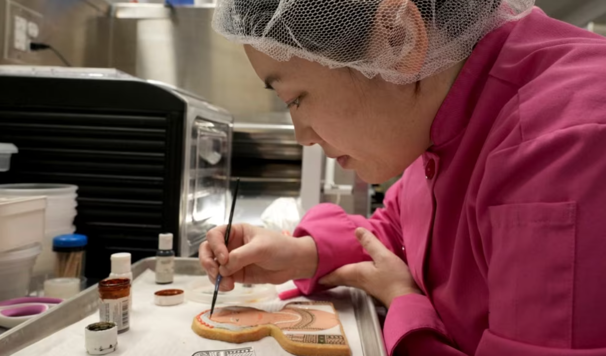 예술가 자스민 조는 잘 알려진 그리고 잊혀진 아시아계 미국인들의 이미지를 그립니다. 하지만 그녀는 그녀의 예술을 창조하기 위해 종이나 캔버스를 사용하지 않습니다. 그녀는 쿠키를 사용합니다.