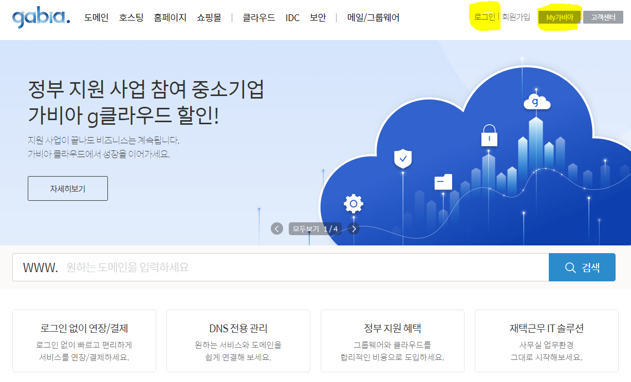 ① 가비아 사이트에 들어가셔서 [로그인] > [My가비아]로 접속합니다.