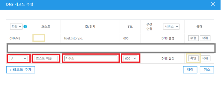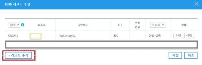값/위치: host.tistory.io. (io 뒤에 . 까지 넣어줍니다)